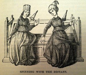 Today is Distaff Day, the day of resumption of women’s work. Those who remember this date at all — pretty much just me and sometimes the Old Farmer’s Almanac folks — have a choice of observing it on 7 January, the day after Epiphany, or on the first Tuesday after Epiphany. My grandmother was in the latter camp, claiming that it was Distaff Tuesday and did not happen until the first Tuesday after Epiphany. The Almanac folks have recognized a Saturday Distaff Day, but I like to hold off until the work week. Not that women’s work has a recognizable work week.