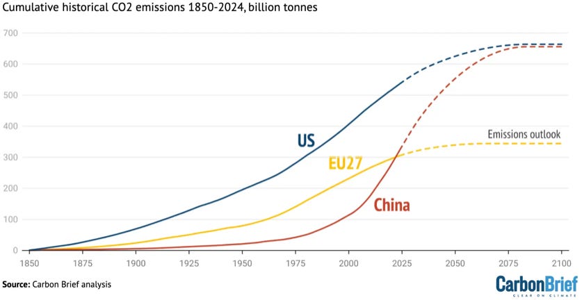 Historic emissions, the cumulative contribution of climate-twisting gases over time, demonstrate how significant China has become to the global climate picture. Carbon Brief calculates China’s have now surpassed those of the European Union.